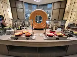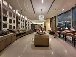 The hotel restaurant is located on the 5th floor, offering a wide variety of dishes including Chinese, Western, Japanese, and authentic Thai cuisine. There are also soft serve ice cream and various fruits as desserts, which are impeccable. Dining there around 6 a.m. provides a fairly relaxed atmosphere, but after 7:30 a.m., it starts to get crowded, showing that the hotel’s breakfast service is well appreciated by travelers.