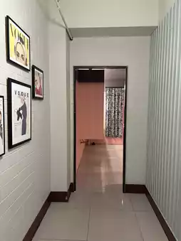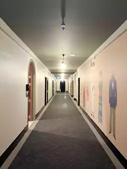 The illustrations and decorations on the walls leading to the rooms are very stylish,