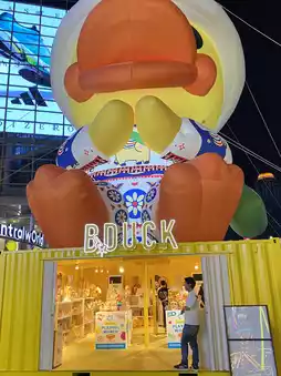 • The main highlight is a 10-meter tall inflatable B.Duck in traditional Thai costume, positioned in the center of the event to welcome guests