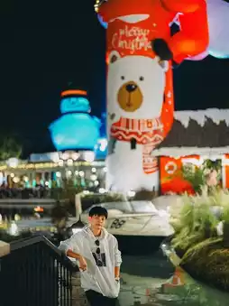 Chocolate Ville is a beautiful place decorated according to various festivals, perfect for taking photos. There are mascot shows that children love. The atmosphere is styled like a European village decorated with bright colors. The area is spacious with many tables and seating available in several zones, each with staff attending to that area. Food can be ordered via QR Code.