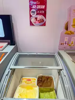 All food is priced by weight (45 THB per 100 grams). This price includes snacks, fruits, and ice cream. On the day of the visit, the snacks included chocolate-filled bear cookies, crispy breadsticks, crackers, watermelon, vanilla ice cream, chocolate ice cream, and green tea ice cream.