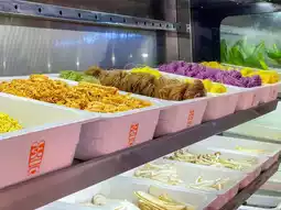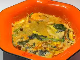 The food is DIY-style, allowing you to choose your own ingredients based on your preferences. Ingredients include vegetables, meatballs, noodles, meats, mushrooms, and seaweed.