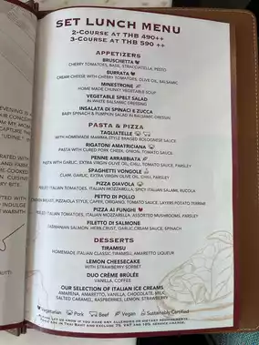 - Filetto di salmone: salmon steak served with spinach and garlic cream sauce