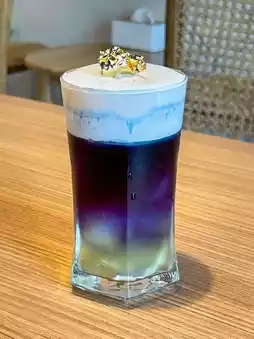 - Fruitails Blue Cloudy: Fruitails drink with coconut water, jasmine tea, butterfly pea tea, luo han guo, and coconut milk (189 THB)