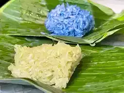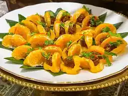 • Bell peppers stuffed with minced pork, mixed with dried golden gourami wrapped in egg leaf