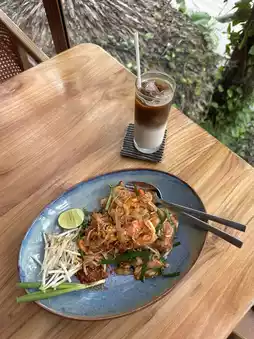 • Pad Thai with fresh shrimp 🍤 – a popular dish with chewy, tender noodles, rich stir-fry flavor, large, fresh, bouncy shrimp, no extra seasoning needed