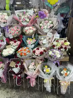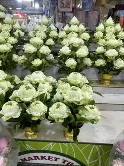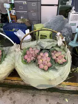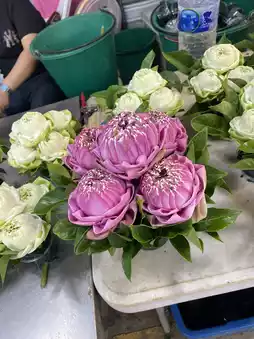 Many flowers in Thailand are imported from Yunnan, and the variety is not as diverse as in Taiwan, with a lot of repetition. The bamboo baskets are filled with local Dendrobium orchids, some yellow flowers I don’t know, and freshly picked lotuses (pink/white) that surprisingly last all day with the folds still looking beautiful—so amazing!