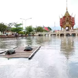 It is a large, spacious temple with many places to sit and relax. It is very shady. My favorite spot is the pond with a pavilion in the middle of the water. There are many turtles here, both small and large. And many turtles show themselves on the raft. They are all big. This is a temple that is suitable for feeding turtles and seeing turtles up close.