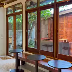 This is a Japanese-style café with a beautifully balanced design, including the layout and garden in various areas of the shop. It's very cozy and perfect for taking photos. The café is located on Wongsawang Road, making it very convenient to get to. Besides the beautiful setting, they also offer coffee, non-coffee drinks, and bakery items 😍😍