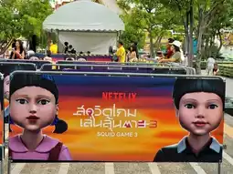🚨Bangkok is shaken! When "Gogowa," the beloved character from the Squid Game Season 3 universe, makes a spectacular appearance in the heart of the city at Lan Khon Mueang, Sao Chingcha 🦑 with a final mission that has fans holding their breath!🪅