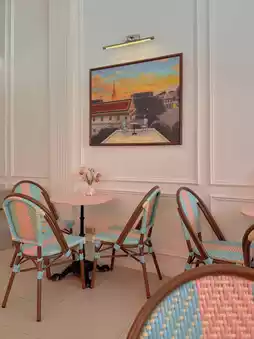 Looking for a café with stunning photo spots and a Parisian vibe? Don’t miss Paulette.bkk, a French-style café that’s minimal yet luxurious, located in the Sukhumvit area. The ambiance is absolutely delightful! Every corner is Instagram-worthy 📸. The café is decorated in white and pink tones, giving off an elegant Parisian feel.