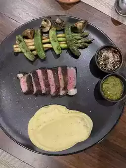 7. Dry-Aged Beef Steak – Australian dry-aged beef aged 40-45 days, served with mashed potatoes and jaew/ chimichurri sauce ()
