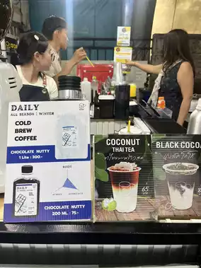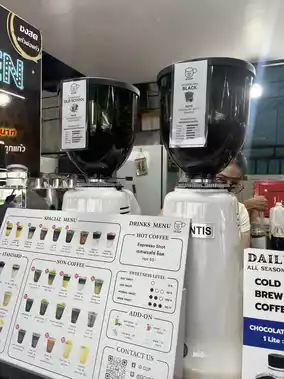 ✨️ A premium coffee and green tea shop, this one-unit shop is located in the second tent at the Train Market, behind the PTT building. They offer a wide variety of menu items.