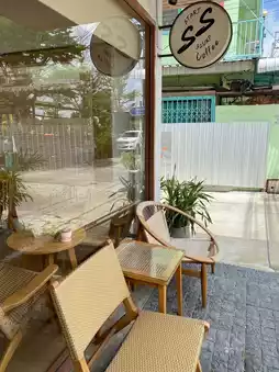 The café is decorated in a minimal style, simple yet stylish, with both a cool air-conditioned zone and a small outdoor area. Trees are scattered around the shop, creating a peaceful feeling, perfect for reading a book or quietly working with friends.