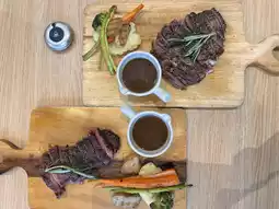 For Instagram-worthy shots, snap a picture of your grand steak plate. Pair it with colorful side dishes on a wooden tray or minimalist white plate. The light wood table + steak combo is absolutely stunning.