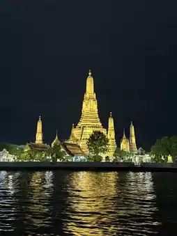 Pass by important landmarks like Wat Arun, the Grand Palace, and Phut Bridge, which look even more majestic and romantic at night. The live music on the boat perfectly matches the atmosphere 🎶❤️