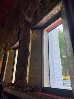 The Reclining Buddha statue inside the temple is 46 meters long, 5 meters wide at the feet, and 3 meters high. The distance between its base and headpiece is 15 meters. It is gilded and made of brick and plaster, then painted and gold-leafed. The mother-of-pearl inlay on the soles of the Buddha’s feet features 108 Buddhist symbols, representing the Buddha’s wisdom and perfection.