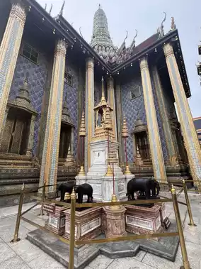 • Ubosot (Main Chapel): Houses the Emerald Buddha carved from a single piece of green jadeite, measuring 66 cm tall and 48 cm wide, symbolizing Thailand’s national treasure. Visitors must remove their shoes before entering the Ubosot, and there are guides to assist. Photography is prohibited inside.