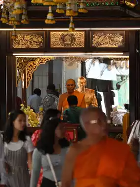 - Opens 8am (฿200 entry, cover shoulders/knees)