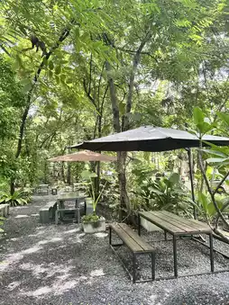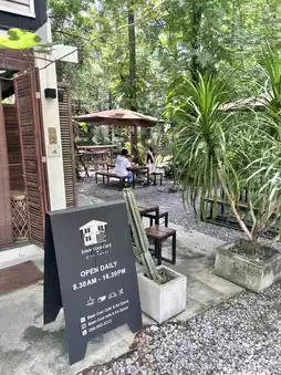 A hidden cafe in King Mongkut's University of Technology Ladkrabang, Faculty of Architecture, with a super chill atmosphere! The cafe is in an old two-story wooden house surrounded by trees, feeling like a small forest 🪴💭