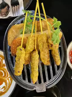 • Roti served with green chicken curry: crispy outside, soft inside roti pairs perfectly with the green curry