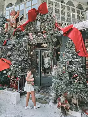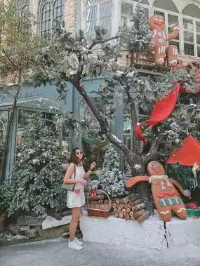 Went to B-Story Café during Christmas season and OMG — it felt like I walked straight into a cozy little European Christmas village ❄️🎅 The whole entrance was covered in fake snow, giant ribbons, decorated trees, a big gingerbread man, and cute Santa statues. Even though there weren’t lights, the decor alone was magical enough!