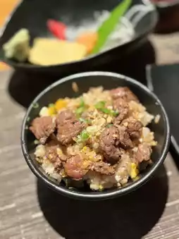 Yakimono and teppanyaki such as grilled salmon, grilled mackerel, Wagyu on a hot stone.
