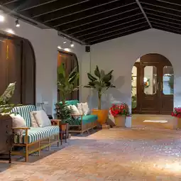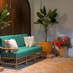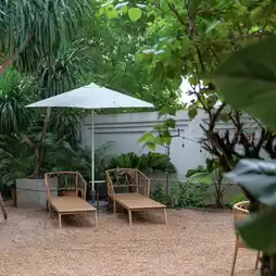 There are trees and green gardens decorated in a modern classic style from the 1940s with a vintage touch. The atmosphere is way more chill than Bangkok ☁️