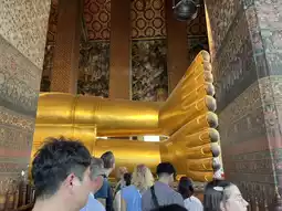 When you enter the main hall, the first thing that catches your eye is the 46-meter-long, golden, giant Reclining Buddha.
