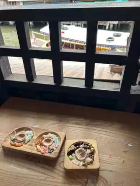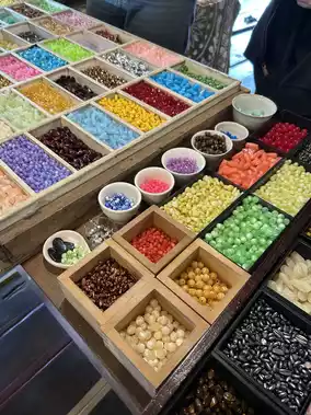 Buy your favorite drink outside before starting on beaded accessories for a good time