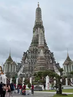 It is recommended to take the orange-flagged boat or the sightseeing electric ferry from Sathorn Pier to the pier in front of Wat Arun. After disembarking, walk to the right towards the exit, and straight ahead is the Thai dress street. There are many Thai dress shops around, and strolling through them wearing traditional Thai attire offers a unique charm.