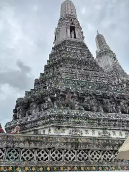 Wat Arun (also known as the Temple of Dawn, วัดอรุณ Wat Arun) is the oldest building located on the banks of the Chao Phraya River and is the largest Mahayana-style stupa in Thailand. It is decorated with a large amount of colorful ceramics layered intricately, with every corner exquisitely crafted. It looks beautiful from every angle.