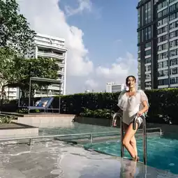 🤍 Relax while overlooking the Bangkok cityscape at the rooftop pool