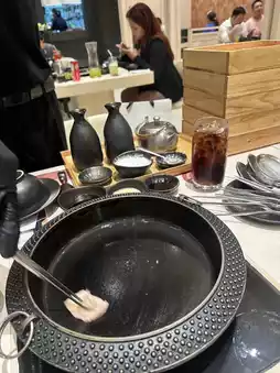 The moment you step into the restaurant, you will feel the elegant and warm Japanese-style atmosphere. The decor focuses on comfort, using wood and natural tones, creating a relaxing and private ambiance, perfect for enjoying shabu casually with friends or someone special.