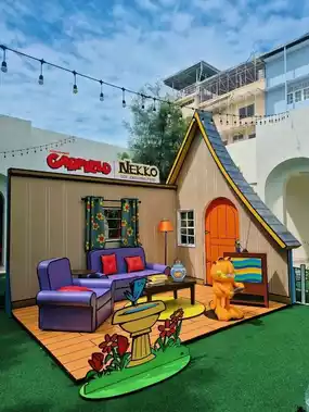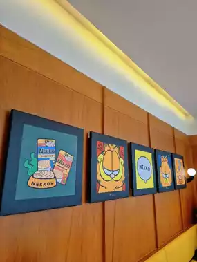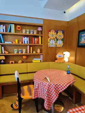 For all Garfield fans, hurry up and rush over!! It’s like stepping into the world of the lazy orange cat 😽😸 There are also items for sale such as water bottles, cat hats, and bags featuring Garfield designs. These are only available at the store.