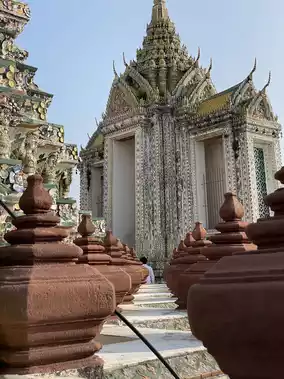 I booked my stay in #bangkok and nearby transport with Trip.com, allowing me to wander freely through this historic area. The pagoda stands out for its intricate mosaic tiles and colorful ceramic details. Gold accents shimmer under the sun and delicate floral patterns reflect superb craftsmanship.
