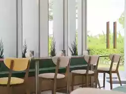 🩵 𝑪𝒖𝒓𝒗𝒚.𝒅𝒊𝒏𝒊𝒏𝒈 is located in the Bangkok-Kritha-Romklao area, designed with smooth curves, great atmosphere, very spacious with both indoor air-conditioned cozy corners and outdoor seating with green grass 🍰 ☕