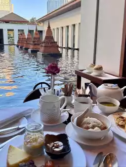 Impressive breakfast buffet and fine dining options, including the famous Celadon Thai Restaurant