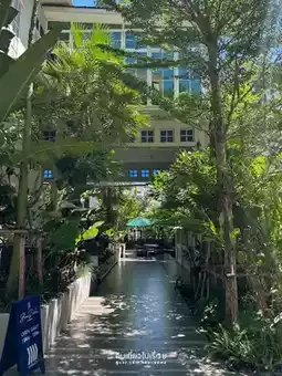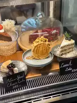 Ban Dahla, a café hidden inside a large house in the heart of the city, sharing space with the restaurant Ban Dahla by Angkana. The café area is at the front, so you can simply open the door and find it right there. There are small seats to relax, and a counter to order drinks. Delicious Thai desserts are beautifully displayed in the cabinet.