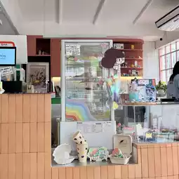 Sunny Flavour Cafe in Bangkok, Thailand, is a charming cafe with pastel colors and palm tree motifs, making you feel as if you've stepped into a picture book world!
