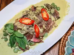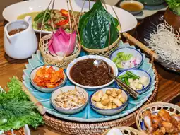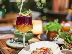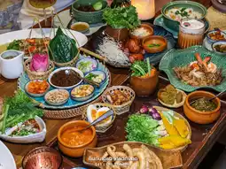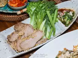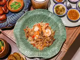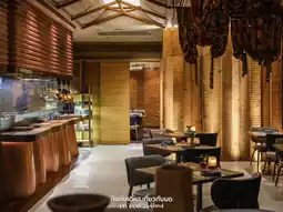 Nava Kitchen, with a buffet breakfast featuring a full line-up like a 5-star hotel. For other meals, this restaurant serves Thai fusion from every region: Northern appetizers, grilled shrimp with tamarind sauce, crab fried rice, pomelo salad, lotus petal wraps, green curry beef, Isaan sausage, etc. The authentic flavors are well done.