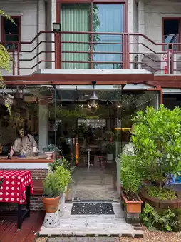 This is a warm, homey-style cafe located in the Prachachuen, Chatuchak area. The highlight of this place is the homemade bagels with a variety of fillings, both savory and sweet. They also offer coffee and non-coffee beverages. This is another cafe I highly recommend. Great atmosphere, delicious treats, and beautiful spots for taking photos 😍😍