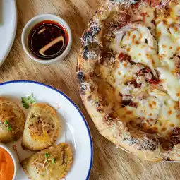 😋 'Leslie’s Hong Kong BBQ Pork Pizza' – authentic Cantonese-style red pork pizza served with mala kale and Hong Kong-style chili oil, inspired by Leslie Cheung.