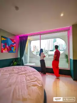 The Fig Lobby, Bangkok Found a vibrant place to stay in Bangkok. Inside, it’s like an ART Gallery, perfect for taking photos because it’s so artistic. This room is really cool and stylish, very comfortable and spacious. If you’re coming from the provinces or have foreign friends, I highly recommend it. Oh, it’s pet friendly too! Close to the Queen Sirikit Convention Center and Khlong Toei Market, very convenient. The welcome drink is ice cream, there’s a spa and workshops, super fun 🕹️The Fig Lobby hotel #Staycation /The Fig Lobby, Bangkok