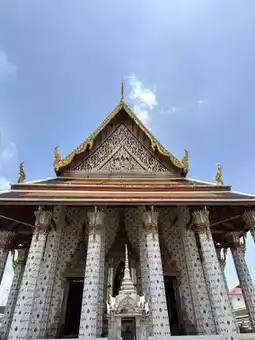 • Take a quick boat ride across the river to Wat Arun (Temple of Dawn) – Beautiful white temple with mosaic details.