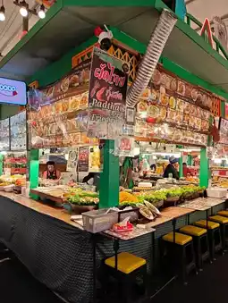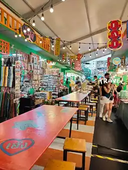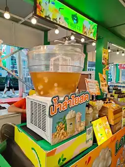 🎪Go for a satisfying stroll at Bangkok Street Food, the lively market in front of CentralWorld in the evening. There are a variety of food menus to choose from, including grilled fish, Pad Thai, and spicy seafood at affordable prices. You'll also find fruits, longan juice, and souvenir shops. It's perfect for food lovers who want to quickly experience local cuisine in the heart of the city. Enjoy a leisurely walk and a full stomach, with tables and chairs available for dining.