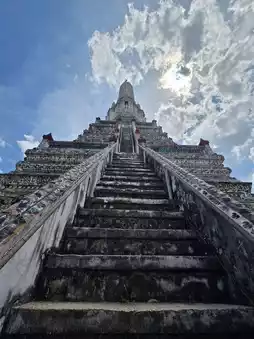 The highlight is the prang by the Chao Phraya River, stunning by day and even more mesmerizing at sunset.