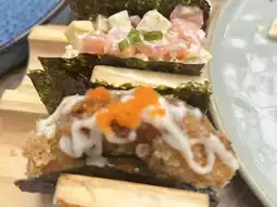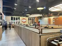 A newly opened buffet restaurant at The Mall Bangkapi offering international cuisine including Thai, Chinese, Japanese, and Western dishes. The new restaurant has a promotion for salmon sashimi at an all-inclusive price of 588 baht. You can dine for 1 hour and 30 minutes. There are desserts and drinks such as rose tea, cocoa, coffee, and yuzu, offering a good variety. The taste is fresh and delicious, food is served quickly, and the service is good. The interior is comfortable and luxuriously decorated, with chairs available for children as well.