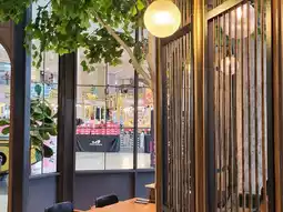 The restaurant’s decor is stylish, with walls adorned with blue-dyed fish patterns and plenty of green plants, creating a fresh and natural atmosphere. The seating area is spacious and comfortable, suitable for both solo visits and gatherings with friends. The overall environment is not only great for photos but also relaxing and pleasant.