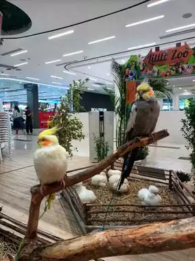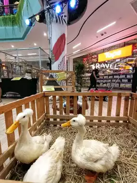 Little Zoo has many small animals such as rabbits, dwarf goats, Brahma giant chickens, crested ducks, Java sparrows, parrots, mice, and American Silkie chickens for children to see.
